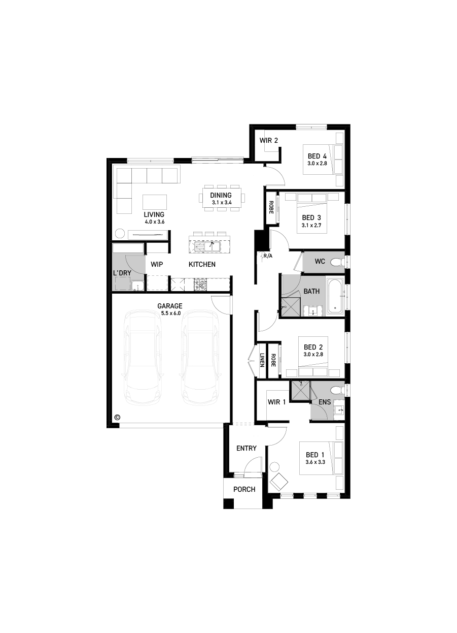 Smart family living and modern design come together in the Carter 18. This clever single storey home offers four bedrooms, two bathrooms and a double car garage – thoughtfully designed to make the most of every space.